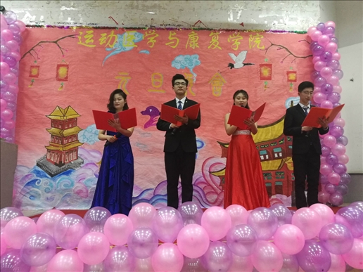 晚会节目精彩纷呈,内容多彩,现场氛围热情洋溢。杨璐萌同学深情演唱的歌曲《追光者》让我们在这刚刚好的时间刚刚好的地点一起回忆昨日的美好;潘博瑞、邓伟等表演的小品《老人院》凭着幽默的语言和出色的表演演绎了不一样的康复医院,赢得了观众们的笑声与阵阵掌声;歌曲串烧、脱口秀、拉丁舞、歌伴舞等节目让大家享受了一场视听盛宴。同时,晚会中穿插的“微信墙”更是将现场的气氛推向高潮,同学纷纷表达自己的新年愿望,祈盼明年幸福快乐。整场晚会在一首婉转优美的歌曲《青春纪念册》中完美落下帷幕。
