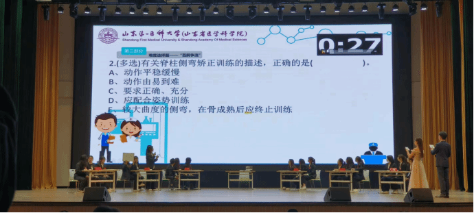 本次比赛共设置眼疾手快、百舸争流、厚积薄发三个环节,共有六支参赛队伍通过层层选拔闯入决赛。比赛现场气氛热烈,选手们认真备战,积极抢答,踊跃回答问题。选手们扎实的知识储备、灵活的现场应变、坚定的必胜信念赢得了现场观众的阵阵掌声。场上比赛如火如荼地进行,场下观众热情互动,经过击鼓传花、抢答问题、跳《健康操》等活动,将现场气氛一次又一次推向高潮。