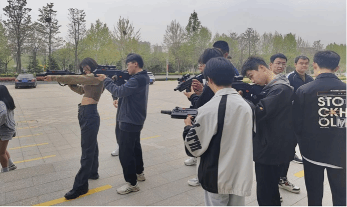 在体验环节,师生共同参与,大家热情高涨,逐项参与红色题材剧本杀、真人cs、激光打靶等体验项目,亲身感受了各类项目的内容和乐趣。