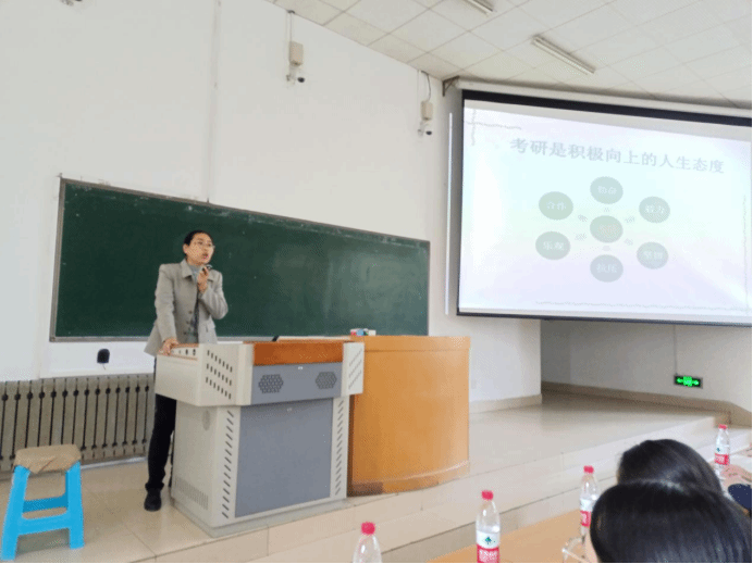 王荣梅老师在交流会上指出考研是人生的态度,考研需要具备专业的素养及特质,要珍惜大学时光,在大学四年努力提升自己,尤其重视英语知识的积累和老员工创新创业项目的申报,磨练提升自己的创新性思维和科研能力。并通过自己宿舍当年考研的经历现身说法,鼓励员工努力学习,一鼓作气,共同行动,合作共赢。