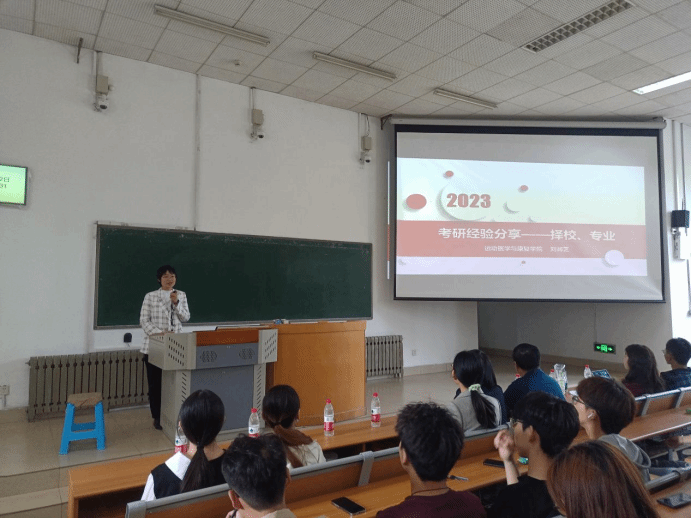 刘润芝老师首先介绍了择校与择专业两个方面思路和方法,要根据地域、兴趣等方面认真选择,讲解了运动人体、运动康复以及康复治疗三个专业考研的细节与区别,分享了考研信息搜索的渠道和学习资料的网站。她建议考研应该树立好自己的目标,对未来的规划不可好高骛远、脱离实际,应将自身条件与目标相结合,下定决心、注重积累、踏实准备。
