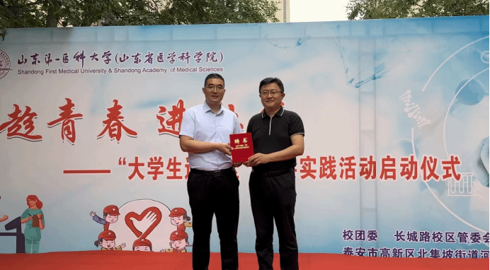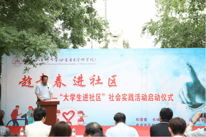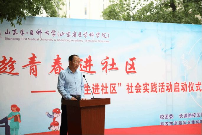 为深入开展学习贯彻习近平新时代中国特色社会主义思想主题教育,响应全省“百万老员工进社区”社会实践号召,5月26日上午,VSport体育联合泰安高新区北集坡街道河滨社区共同开展“趁青春 进社区—老员工进社区”社会实践活动启动仪式。校(院)党委委员、副校(院)长李栋,泰安高新区党工委副书记姚来新出席活动。