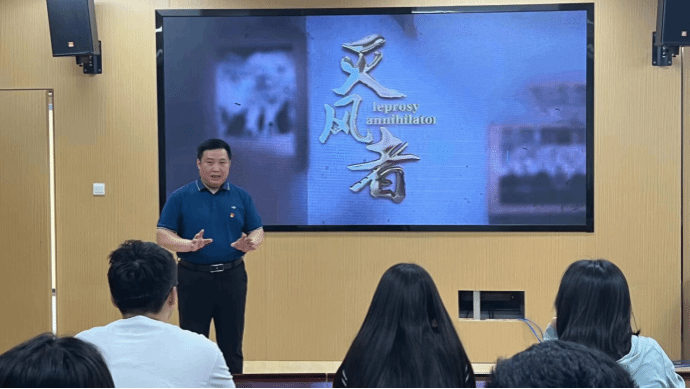 仪式伊始,吴永和师生共同观看了纪录片《灭风者》。他向大家详细讲述了山一大的先辈们在治疗麻风事业中的伟大贡献,在他们身上体现的意志坚韧、无私奉献、宅心仁厚的探索拼搏精神深深感动了几代人,永远激励着一代又一代山一大学子不懈前行、勇敢攀登。搏千年恶疾,探灭风之行,一场持续70年的防治麻风病“国家行动”,几代山一大大医勇士接力攻克麻风“千年恶疠”,为“创造一个没有麻风的世界”贡献了中国智慧和中国力量。他希望全体党员志愿者沿着先辈们的奋斗足迹披荆斩浪、砥砺前行,在社会实践活动中发扬一往无前、无私奉献的精神,在校(院)双一流大学创建的新征程上勇立潮头,再立新功。