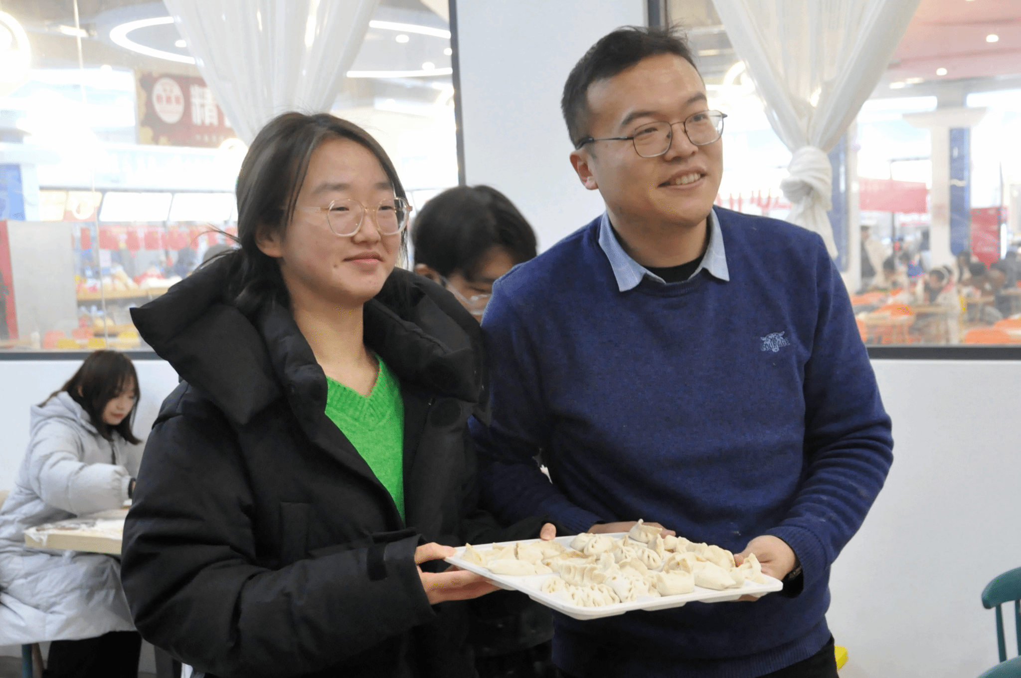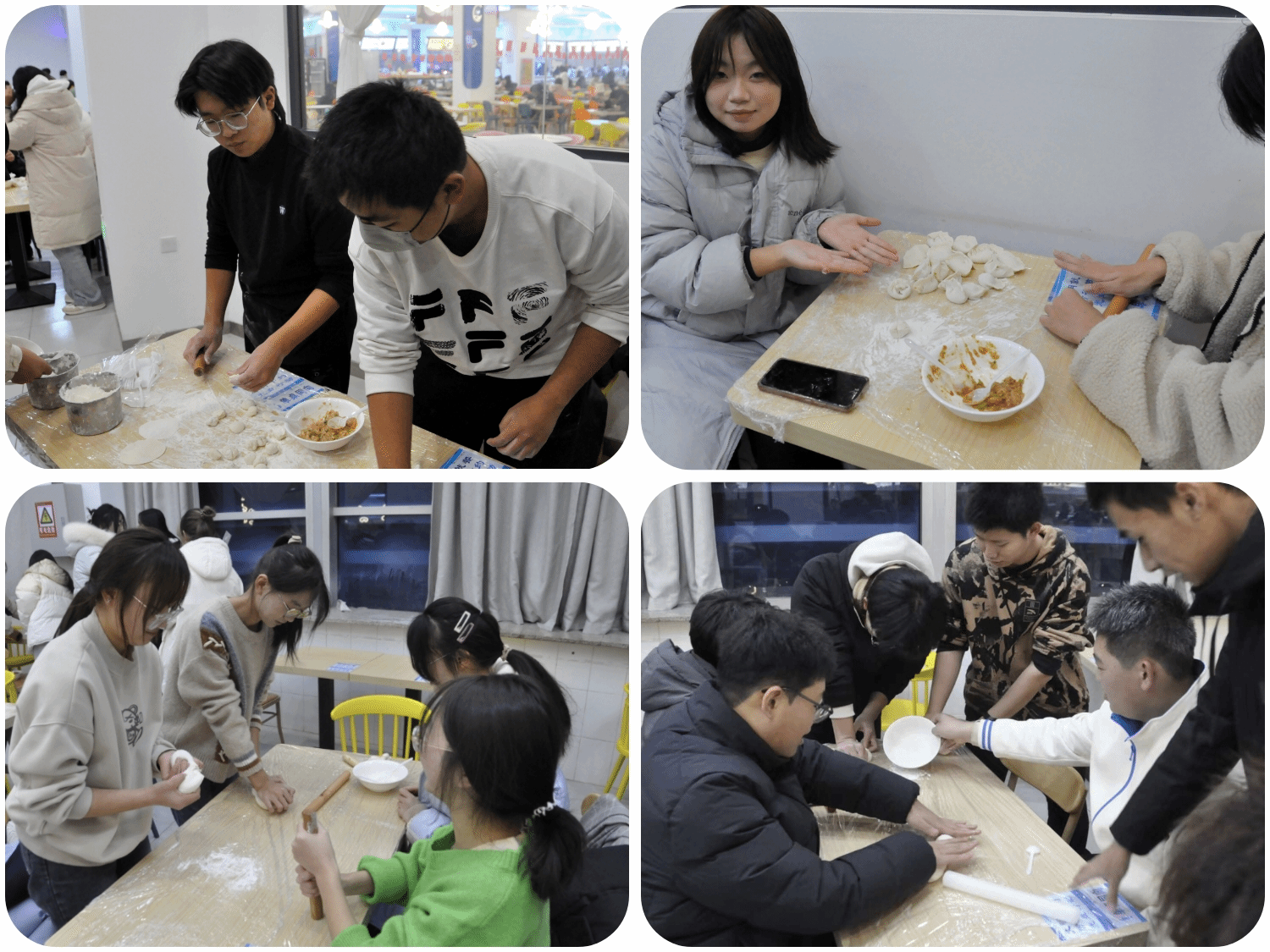 欢声笑语中,饺子皮在同学们的手中翩翩起舞,而交流的笑谈和温馨的小故事更让整个餐厅洋溢着家的温暖。就在同学们兴致正浓之时,刘志远老师也加入了行列,与同学们一起分享这份欢乐的包饺子时光。